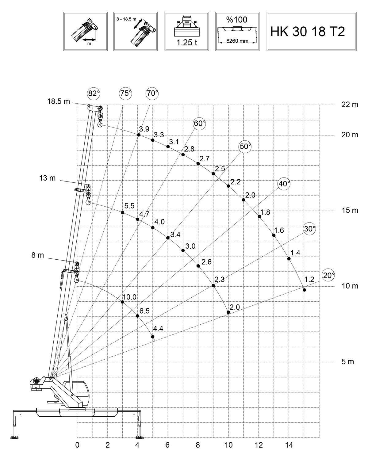 • Main boom length 8 m - 18.5 m